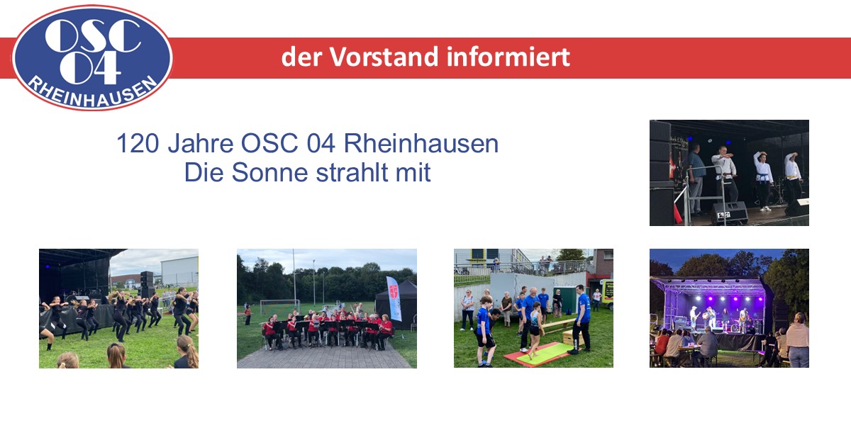 Mit viel Musik, Aufführung aus dem Vereinsleben und prominenten Gästen feierte der OSC auf der Platzanlage in den Peschen seinen runden Geburtstag. Frau Bürgermeisterin Klabuhn überbrachte die Glückwünsche der Stadt Duisburg und betonte die integrative Kraft des Sport. Die Bezirksbürgermeisterin, Frau Liss, als häufiger und geschätzter Gast bei unseren Veranstaltungen hob die Bedeutung für den Stadtteil Rheinhausen hervor. Frank Brüggemann, Geschäftsführer der Novitas-BKK und Unterstützer des OSC unterstrich die Bedeutung des Sports für die Gesundheit für alle Altersklassen. Hans-Joachim Gossow, Vorsitzender des SSB und langjähriges Mitglied im OSC Handball, vermochte einige eigene Erinnerungen einzubringen. Wie alle Rednerinnen und Redner sieht er den OSC gut aufgestellt und versprach, dafür zu sorgen, dass auch die „andere Rheinseite“ in Duisburg nicht zu kurz kommt.
