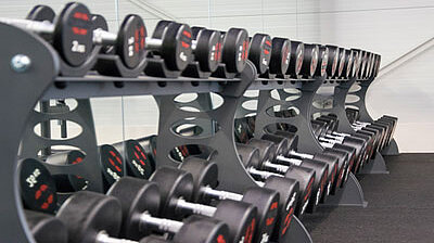 Klassische Hanteln in sämtlichen Ausführungen dürfen auch in der Sportwelt Rheinhausen nicht fehlen.